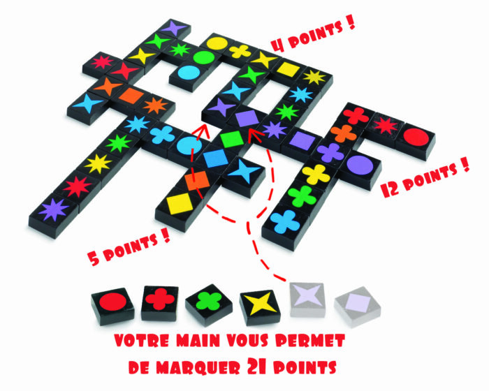 Réaliser des lignes de tuiles ayant la même forme OU la même couleur, et ainsi accumuler des points. Qwirkle se joue à la manière d’un Scrabble: chacun, tour à tour, pose ses tuiles en les connectant à celles déjà jouées au centre de la table…