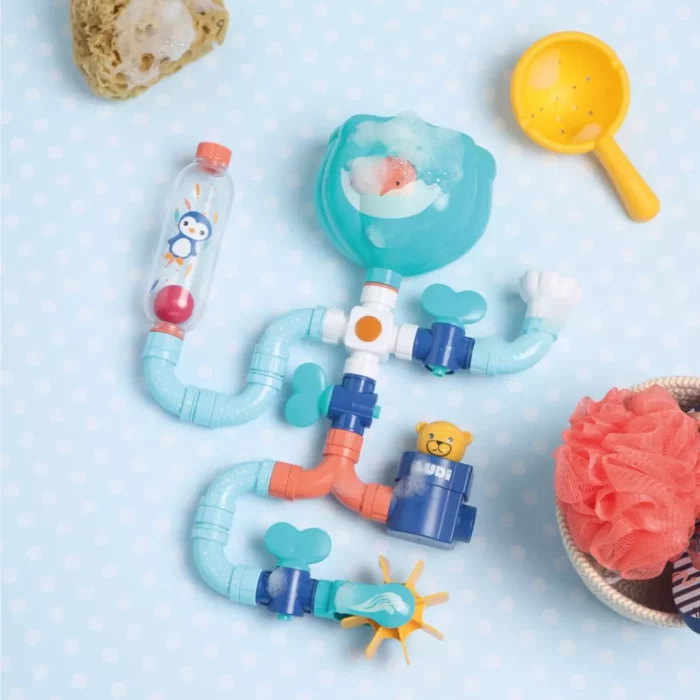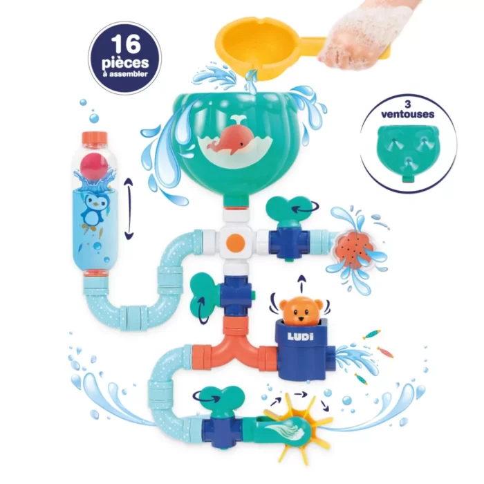 Un grand circuit à construire pour découvrir les effets de l’eau ! 16 pièces interchangeables pour créer son propre parcours. Stimule l’imagination et la dextérité des enfants.