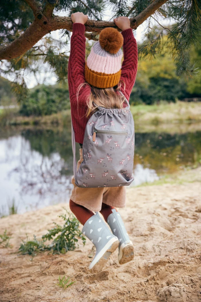 Le sac à dos idéal pour partir à l’école dès 2 ans et demi. On peut y glisser un format A4 sans risque, des petits trésors dans la poche avant ou encore une gourde sur le côté. Fait à partir de polyester recyclé il accompagne les enfants dans leur quotidien.
