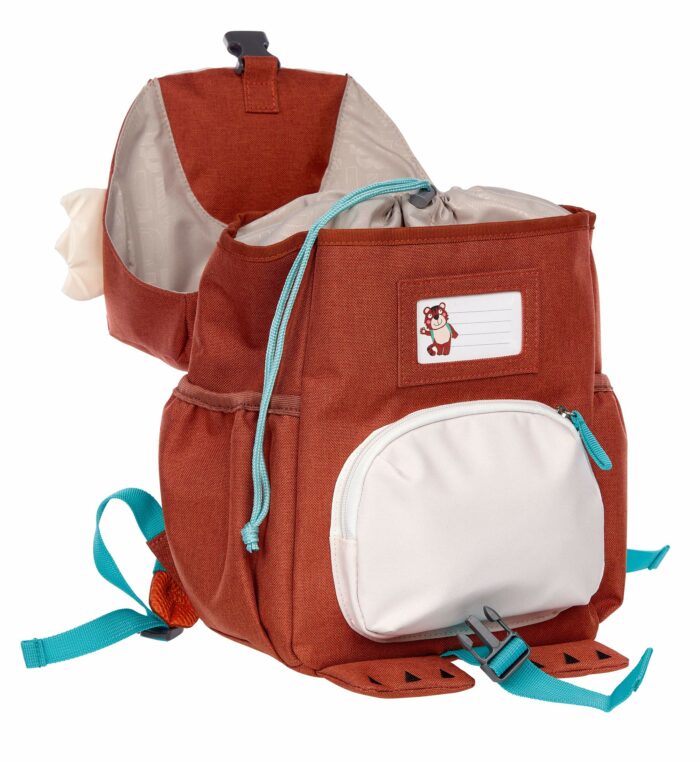 Avec ce sac à dos mignon, votre tout petit sera prêt pour la grande aventure de l’école! Ce sac à dos a des bretelles rembourrées et réglables. Il y a une petite poignée sur le dessus pour le tenir en mains plus facilement et le suspendre sur n’importe quel crochet. La fermeture au niveau de la poitrine empêchera que le sac ne tombe trop facilement. Le sac a un grand compartiment et une petite poche à l’avant où peut s’insérer facilement un petit en-cas. Les deux ouvertures se font grâce à une fermeture éclair, ce qui rend la manipulation plus facile pour nos petits bouts. Afin de ne pas perdre ce nouveau copain de route, une nominette se trouve sur l’intérieur du sac. De plus, ce sac est hydrofuge.