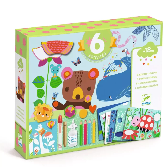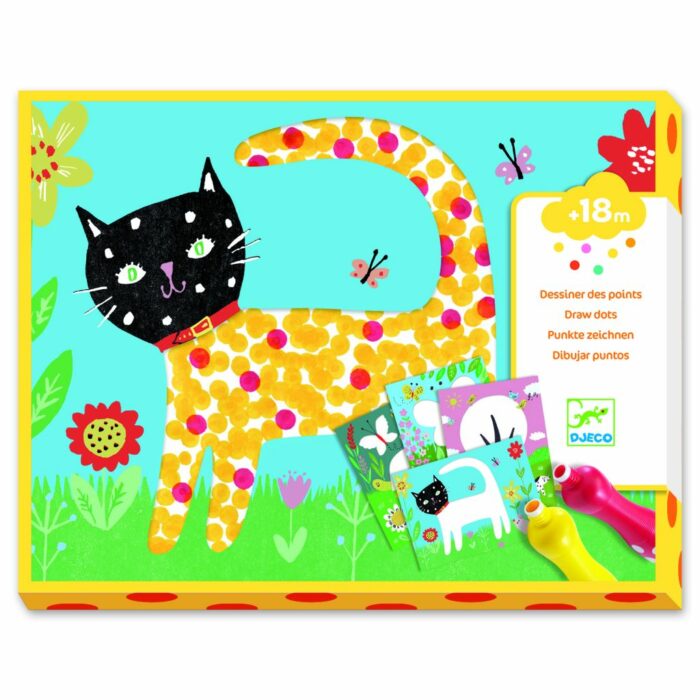 Quelques gouttes de peinture… pour colorer les animaux avec les doigts. Magique, de petits motifs apparaissent ! L’enfant place les autocollants pour rendre les animaux encore plus beaux !