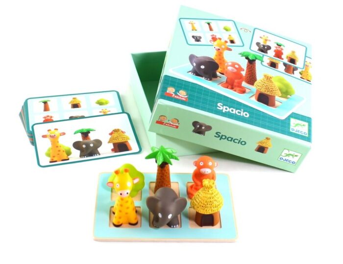 Une grenouille verte toute ronde, un poisson orange et ovale, un camion rouge…Tourne les pièces en bois pour laisser apparaître uniquement les images correspondantes: formes et couleurs… Un jeu auto-correctif !