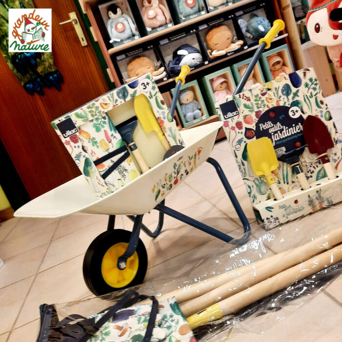 Cette brouette, spécialement conçue pour les jeunes jardiniers, est parfaite pour transporter des trésors du jardin, des jouets, et surtout aider maman et papa à jardiner.