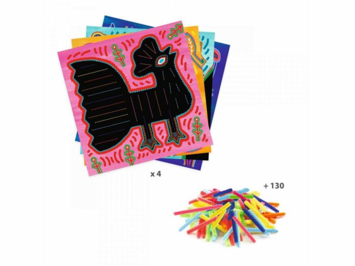 Voilà ce qu’on peut faire, avec 2 tailles de fils chenilles et plein de couleurs. Facile: les trous sont percés dans les cartes. Et magnifique !