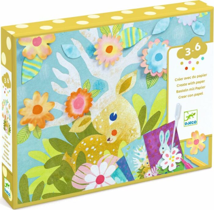 Une multitude de formes, de grands décors, 8 couleurs et de la colle, pour créer comme on veut. Le livret donnera des idées.