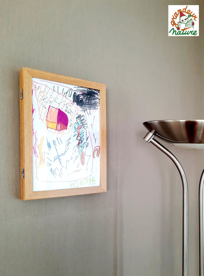 L’enfant crée son tableau à l’aide d’un seul pochoir découpé en 3. Il glisse une feuille, puis rabat le premier pochoir. Il colorie. Il ouvre et fait pareil avec le deuxième, puis le troisième. Le résultat : une magnifique œuvre d’art !