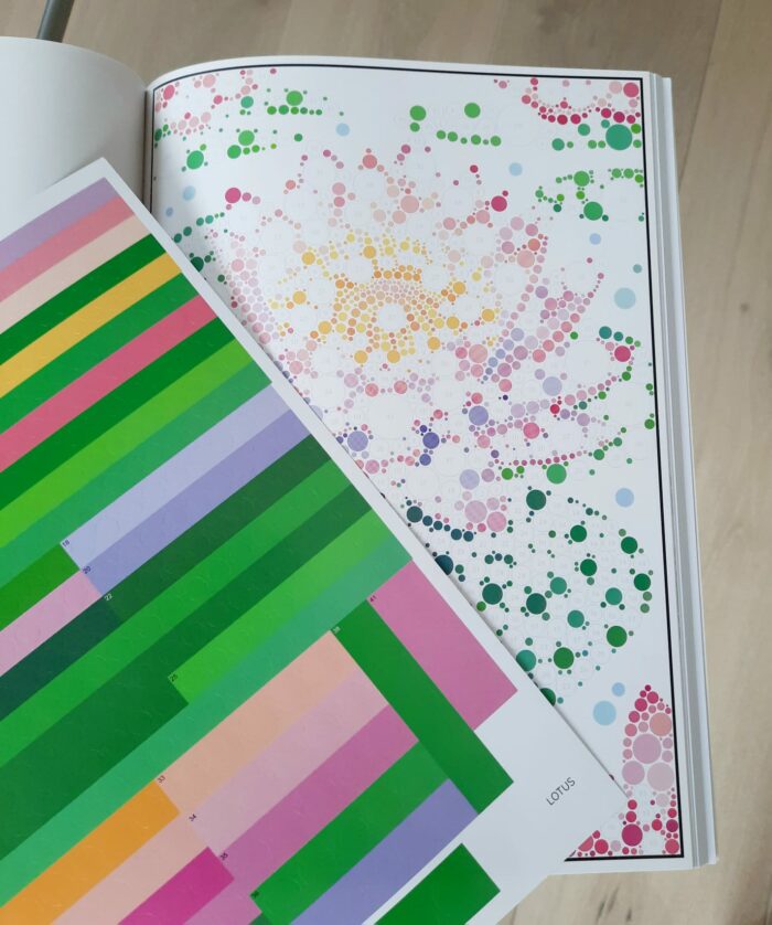 Le détail que j’apprécie beaucoup: vous trouverez une 8ième feuille bien différente des autres car elle est toute noire. Elle est destinée à réaliser une œuvre tout à fait originale, créative !