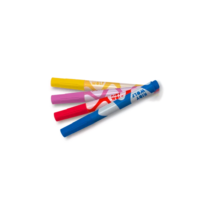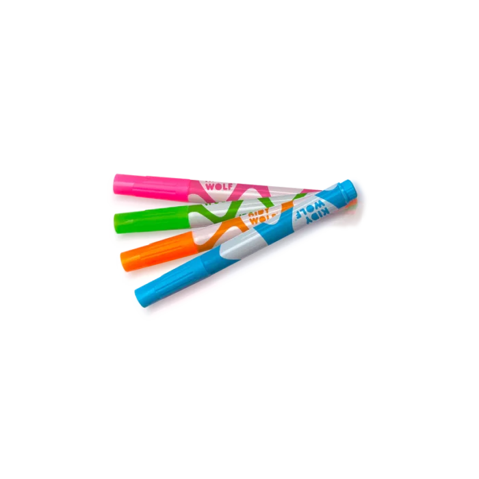 Kit de marqueurs effaçables aux couleurs fluorescentes pour dessiner sur le tableau noir de la KIDYDRAW-PRO. Ils mettant en avant un effet néon qui sublimeront les couleurs des dessins de vos enfants dans l’obscurité.