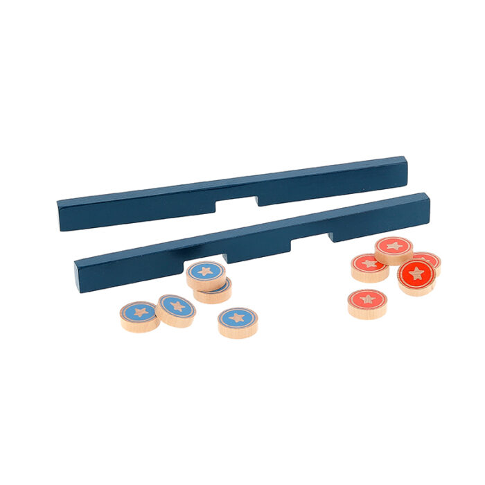 Le but est de se débarrasser de tous ses palets avant son adversaire ou, encore plus difficile, de ne plus avoir un seul palet de son côté. Il faut se servir de l’élastique de son côté comme lanceur et être le plus habile pour viser l’unique trou au centre du jeu.