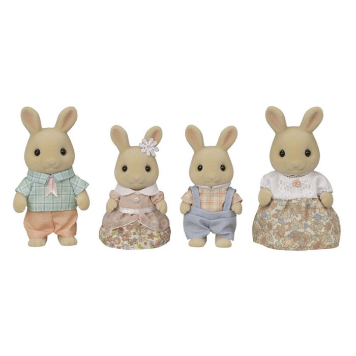 1 figurine maman Lapin Crème, 1 figurine papa Lapin Crème, 1 figurine fille Lapin Crème, 1 figurine fils Lapin Crème