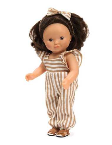 Janet est une poupée mannequin de 32 cm qui tient debout. Sa chevelure crépue est magnifique. Son visage, ses bras et ses jambes sont en vinyle doux au toucher. Elle ferme ses jolis yeux noirs quand on la couche sur le dos. Janet est la plus rock de nos poupées.