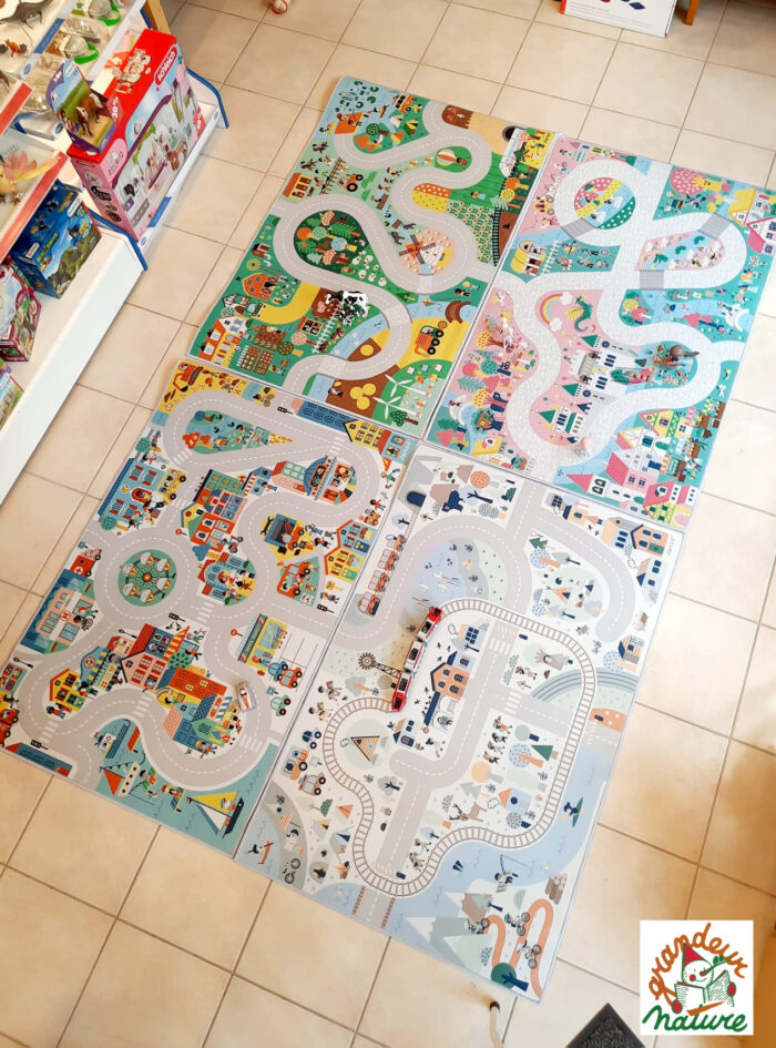 Grâce à sa grande taille (150x100cm), votre enfant pourra laisser libre cours à son imagination pour faire circuler ses voitures et pour y ajouter quelques constructions avec des Kapla ou autres …