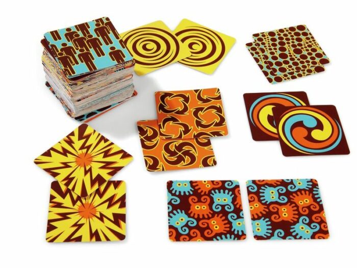 Les cartes vont s’accumuler sur la table : retrouvez vite les motifs strictement identiques ! Certains sont même en triple ! 4 modes de jeu : compétitifs, en équipes et coopératif.