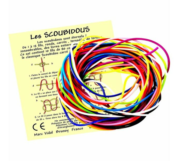 10 brins de 80 cm de toutes les couleurs pour fabriquer le classique et éternel scoubidou.