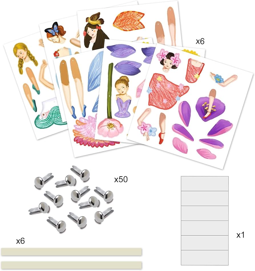 On colorie, puis on assemble avec des attaches parisiennes, et cela devient des pantins animés avec lesquels il est rigolo de jouer.