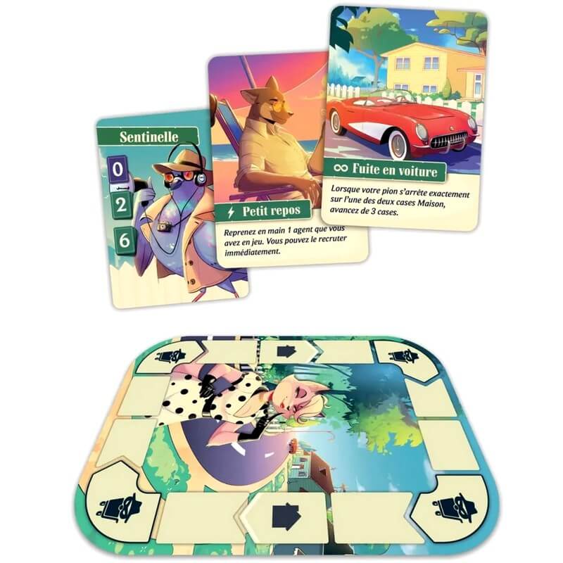 Un palpitant jeu de course-poursuite dans un univers d’espionnage coloré, avec bluff, déduction et tactique, par l’un des auteurs de Mindbug !