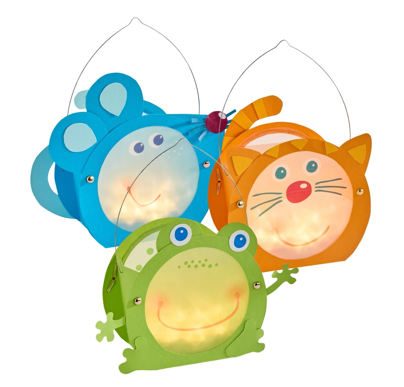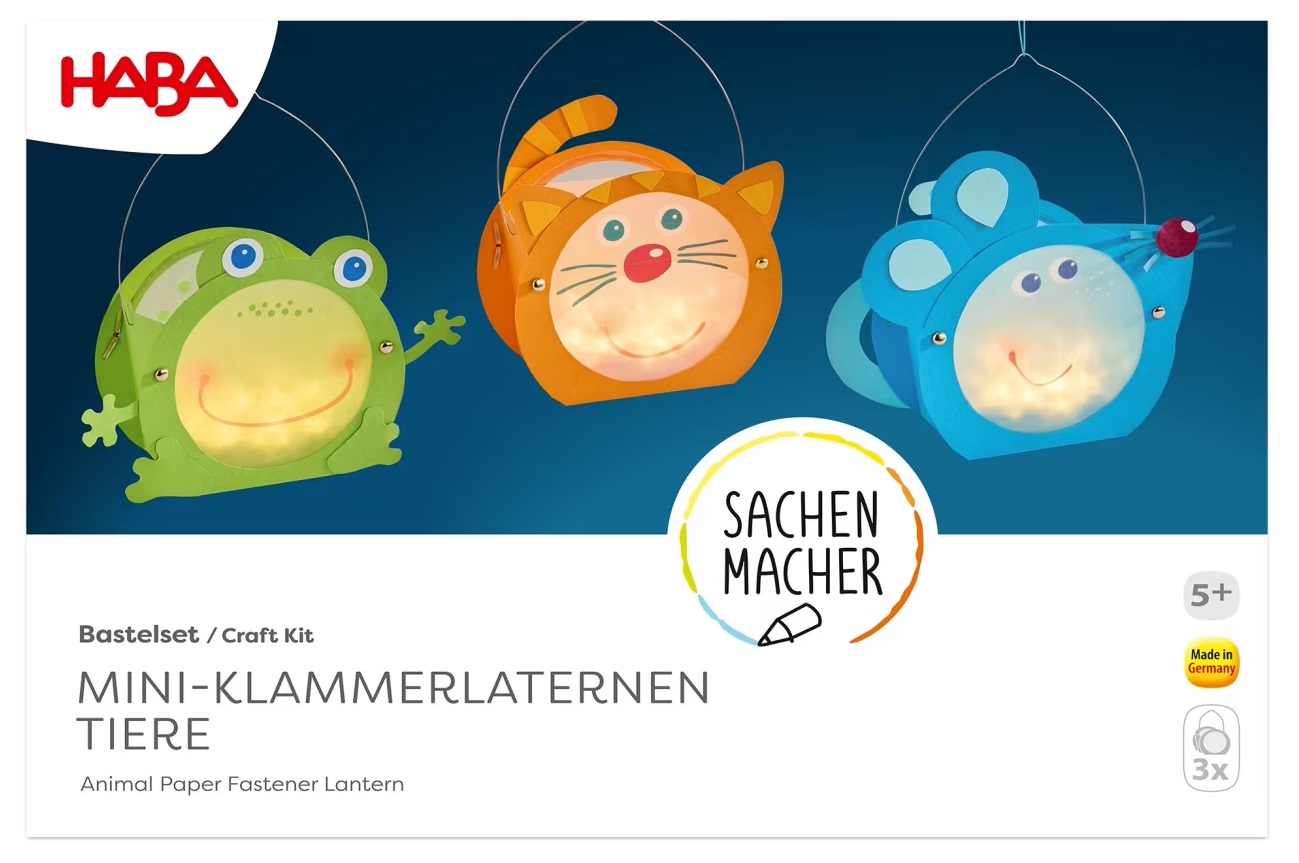 Ce kit créatif contient tout le nécessaire pour réaliser trois adorables mini-lanterne à pinces, idéales pour un défilé de lampions. Les corps des lanternes se plient simplement et se fixent avec des pinces, sans colle ni temps de séchage prolongé. Ensuite, recouvrez-les de papier calque, découpez les formes d’animaux et collez-les. Enfin, insérez une bougie chauffe-plat électrique et les mini-lanterne s’illumineront dans le noir.