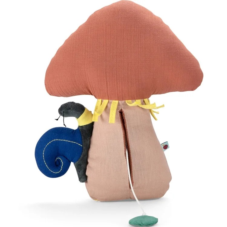 Un champignon musical, certifié OEKO-TEX®, accompagné de son ami l’escargot rigolo pour éveiller et apaiser bébé. La boîte à musique est actionnée en tirant sur la pastille. Pratique, le boitier musical est déhoussable pour faciliter le lavage.
