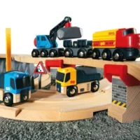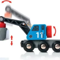 Contenu/Présentation: 32 pièces : 11 rails, 3 sections de route, 2 supports de pont, 3 pierres supports de pont, 1 rail spécial, 2 camion de chantier, 1 locomotive, 1 wagon grue ingénieux, 1 wagon de chargement, 1 passage à niveau, 1 panneau de signalisation, 2 chargements, 1 porte chargement et 2 rampes