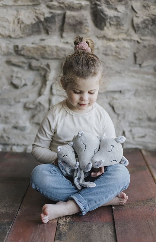 Le coffret comprend 3 doudous : un doudou papa, un doudou maman et un doudou bébé. En plus de ces doudous, un livre illustré accompagne l’enfant dans son histoire, avec une histoire semblable à celle qu’il vit.