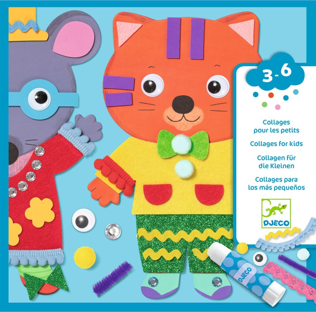 Plein de matières différentes à coller sur des silhouettes en carton épais. Et un résultat trop chou !