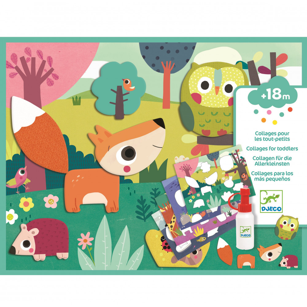 Une dizaine de formes à coller pour réaliser un tableau, et 4 tableaux à faire. Une activité créative pour les tout-petits.