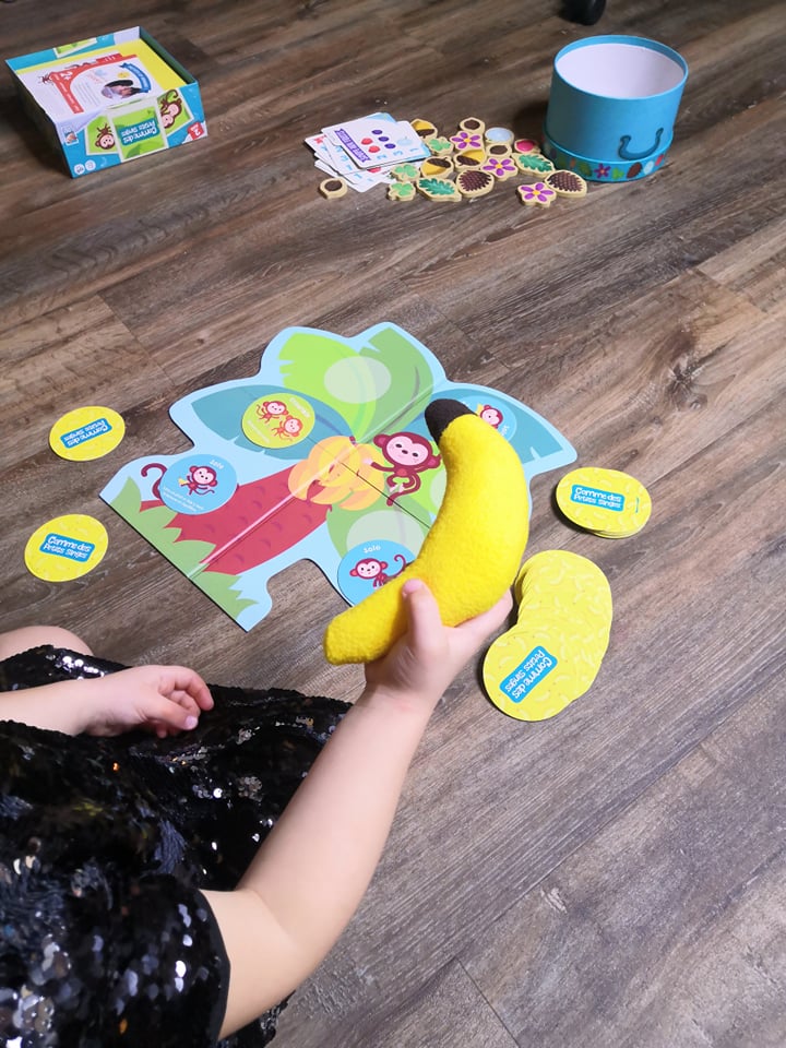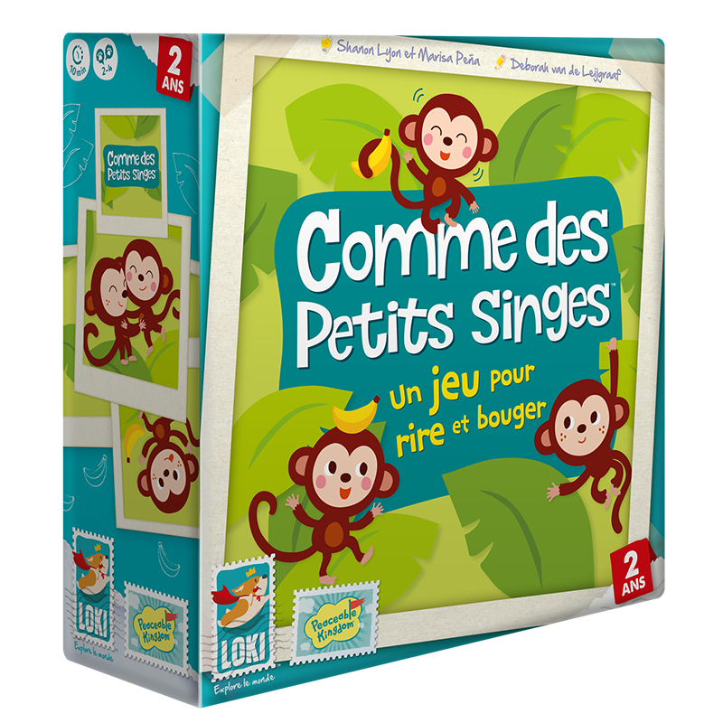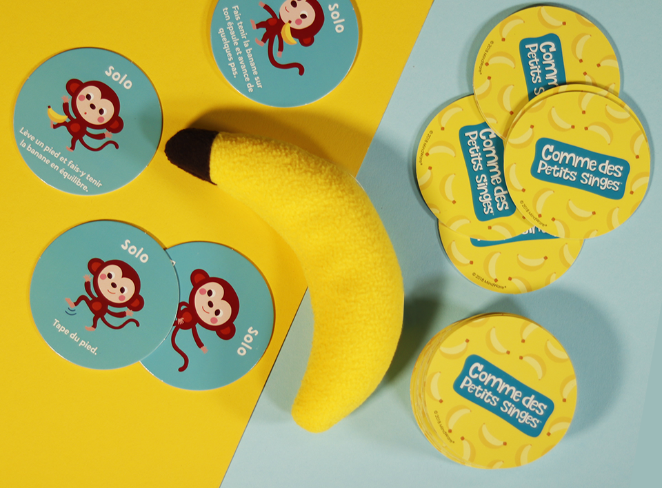 Piochez une carte, reproduisez ensemble l’action indiquée et placez la carte sur l’arbre. Bougez, sautez, attrapez la banane… et partagez tout plein de moments de jeux remplis de tendresse et de complicité !