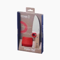 Lame arrondie en acier inoxydable, longueur 10cm, robuste et parfaite pour couper et émincer, anneau pédagogique qui aide à bien positionner les doigts et à empêcher la main de glisser sur la lame, manche en hêtre verni.