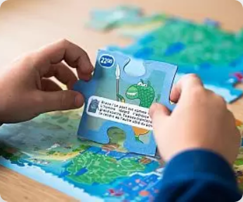 À la fin, le puzzle est rangé dans la boite, prêt à recommencer !