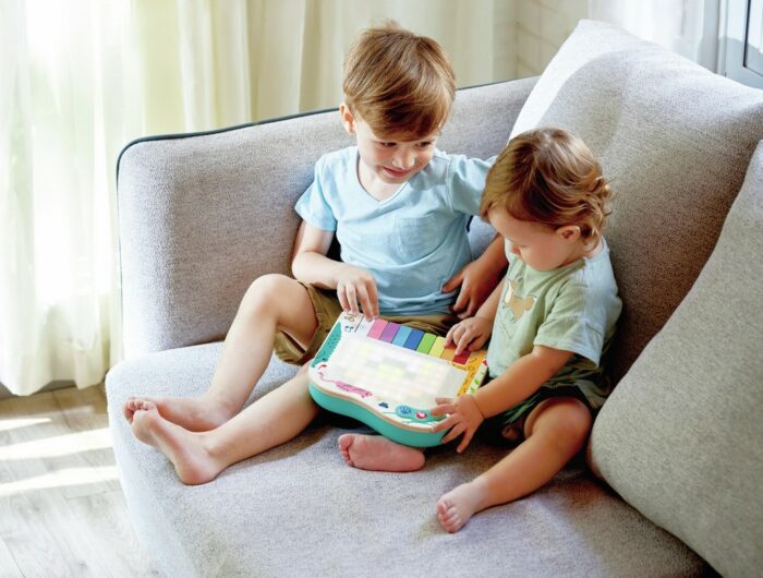 Pour émerveiller votre enfant, ce piano magique émet les cris des animaux accompagnés d’illustrations lumineuses en pixels. Il peut aussi jouer librement ou suivre un tutoriel lumineux.