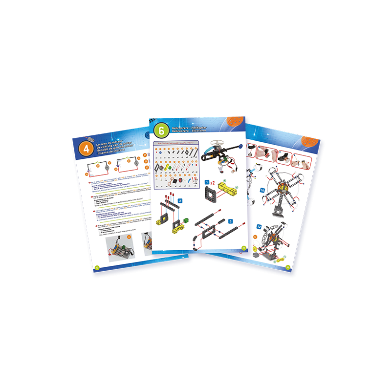 Réalise les montages et construis 17 modèles: phares, grande roue, hélicoptère…