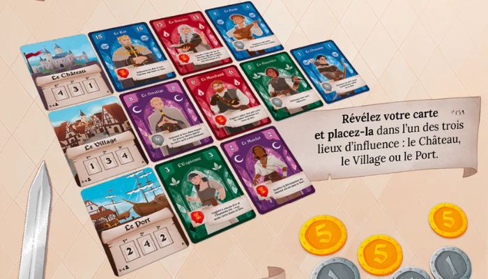 Emblèmes est un jeu de cartes pour 3 à 5 joueurs. Dans ce jeu de pose de cartes malin, accessible et rapide, vous tentez d’imposer votre emblème sur les trois lieux clés du royaume. Posez vos cartes en optimisant vos placements sur les 3 lieux et amassez des pièces d’or si votre influence est incontestée.