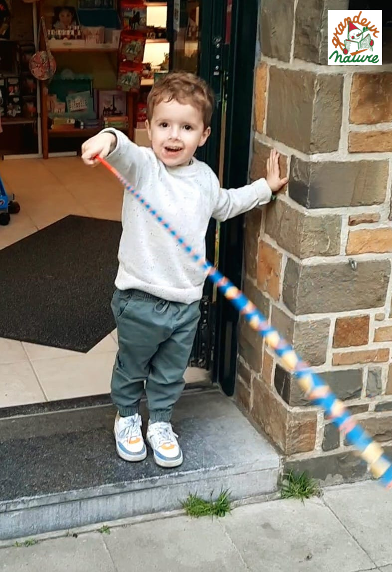 ! Mon fils (il a 25 ans maintenant) déambulait dans toute la maison en actionnant cette baguette télescopique en papier. Il devait avoir entre 2 et 3 ans. Il l’a très souvent utilisée. Si un jouet a pour but de s’amuser, ce petit cadeau à bien répondu aux attentes