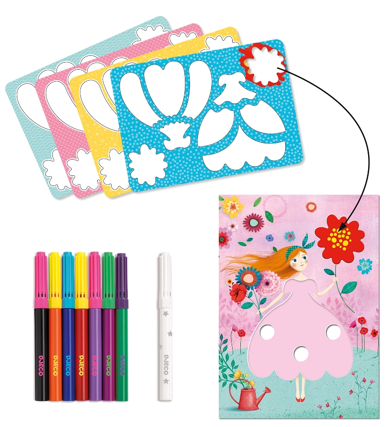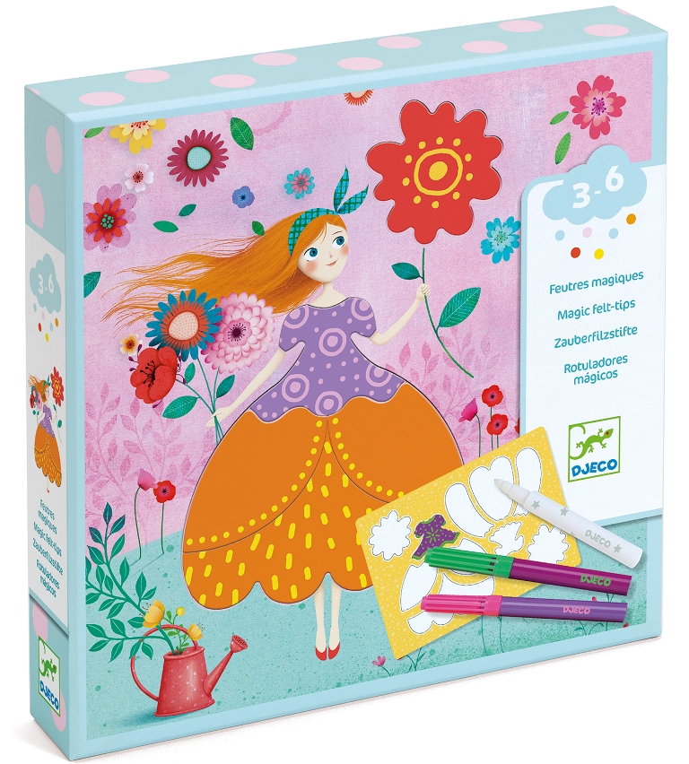 Le fameux jeu d’encastrement, en bien plus amusant, l’enfant colorie les habits, passe le feutre blanc et c’est magique: les couleurs changent et les motifs apparaissent !