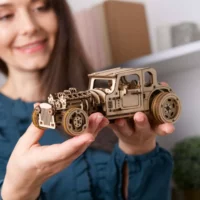 Les maquettes Ugears, c’est la fascination pour les beaux objets en bois et les engrenages. Elles s’animent toutes mécaniquement ! Visionnez la petite vidéo. Cette gamme s’adresse aux patients et minutieux: grands enfants, adolescents et adultes ! Chaque maquette nécessite plusieurs heures d’activité sans utilisation de colle !