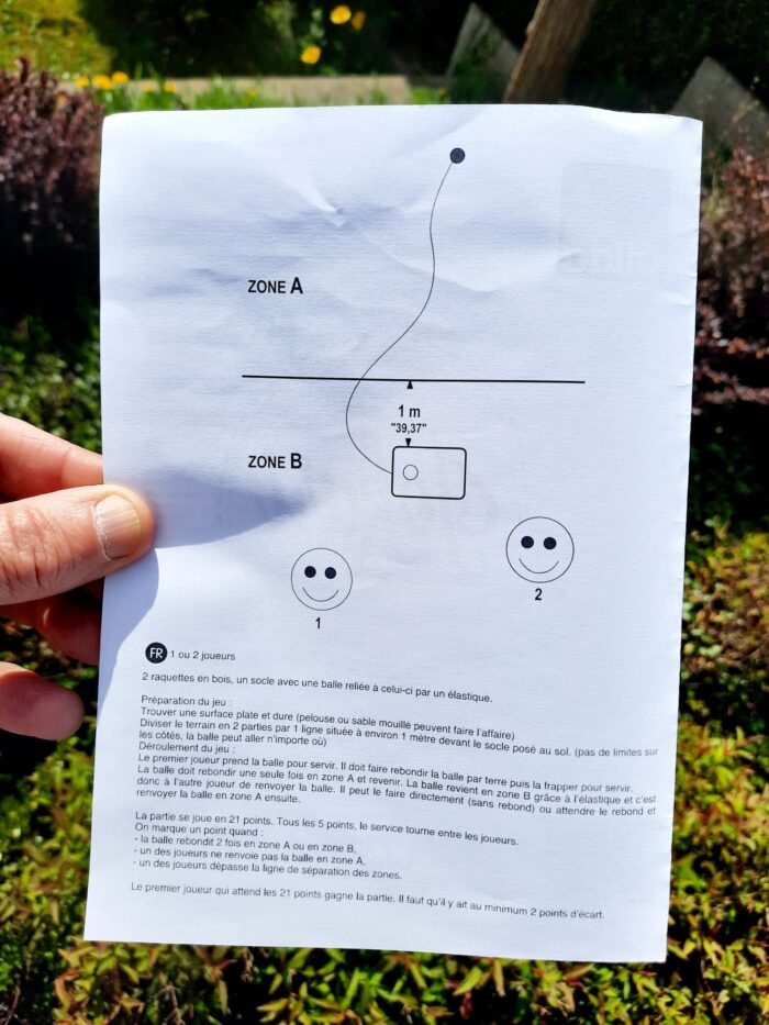 Un grand classique pour le plaisir des enfants toujours en besoin de mouvement. Il a la grand avantage de pouvoir y jouer à 2 joueur ou tout seul. Il est fournit dans un sac en coton précieux pour le transport et pour le rangement. Dès 5 ans