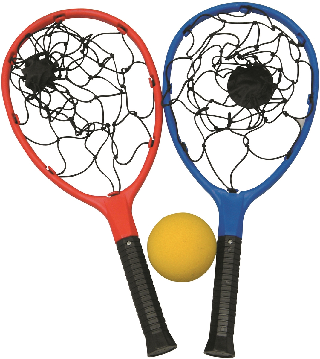 Le tamis de cette raquette est en fait un filet dans lequel on réceptionne les balles mais avec lequel on peut également les lancer. Kit de 2 raquettes et de 1 balle. Dimensions : 40x18cm.