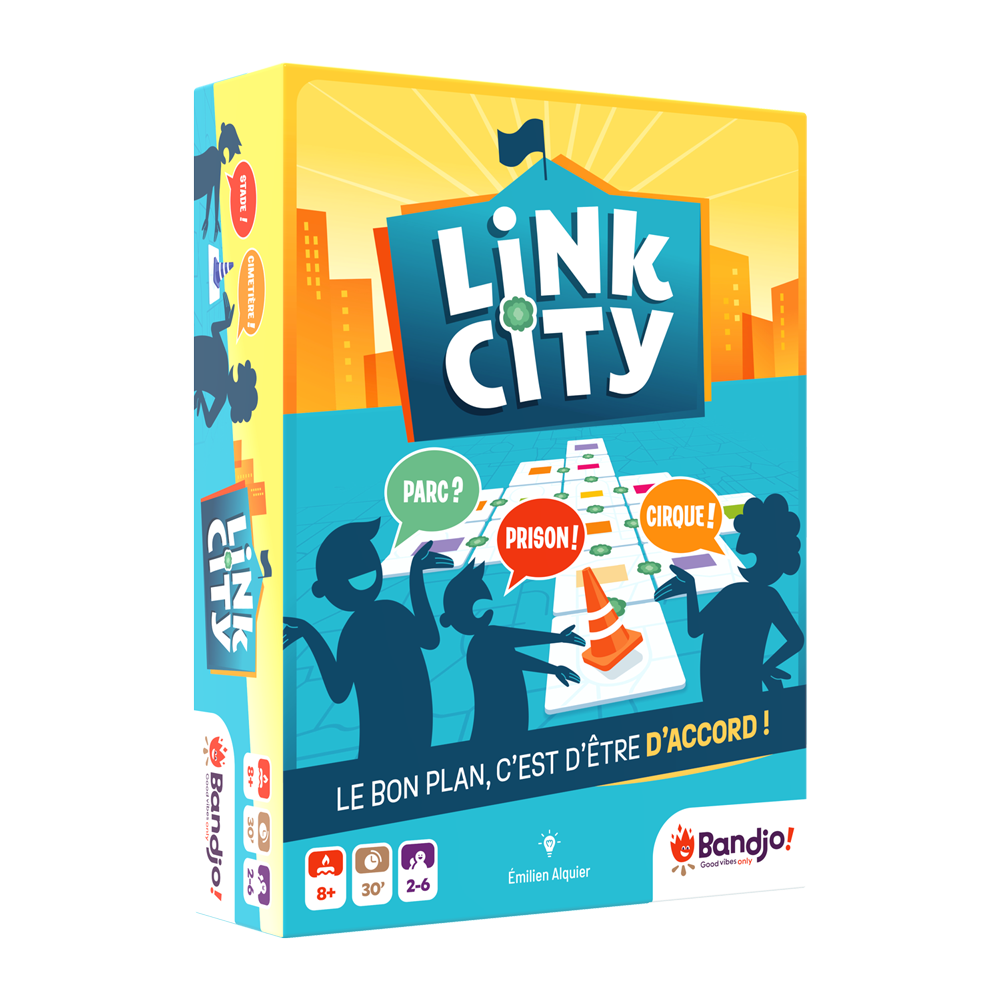 Avec Link City, construis une ville par associations d’idées ! Dans ce jeu d’ambiance coopératif, les joueurs créent en 6 tours palpitants la ville la plus grande possible, pour maximiser les connexions entre les tuiles Lieu et marquer des points. À chaque tour, une personne différente joue le rôle de la mairie. Sa mission : relier secrètement 3 nouveaux lieux aux emplacements marqués par 3 plots de chantier. Le twist ? Les autres joueurs vont ensuite échanger entre eux pour tenter de faire les mêmes choix. Seule l’harmonie permettra de valider les décisions de la mairie et d’agrandir la ville !