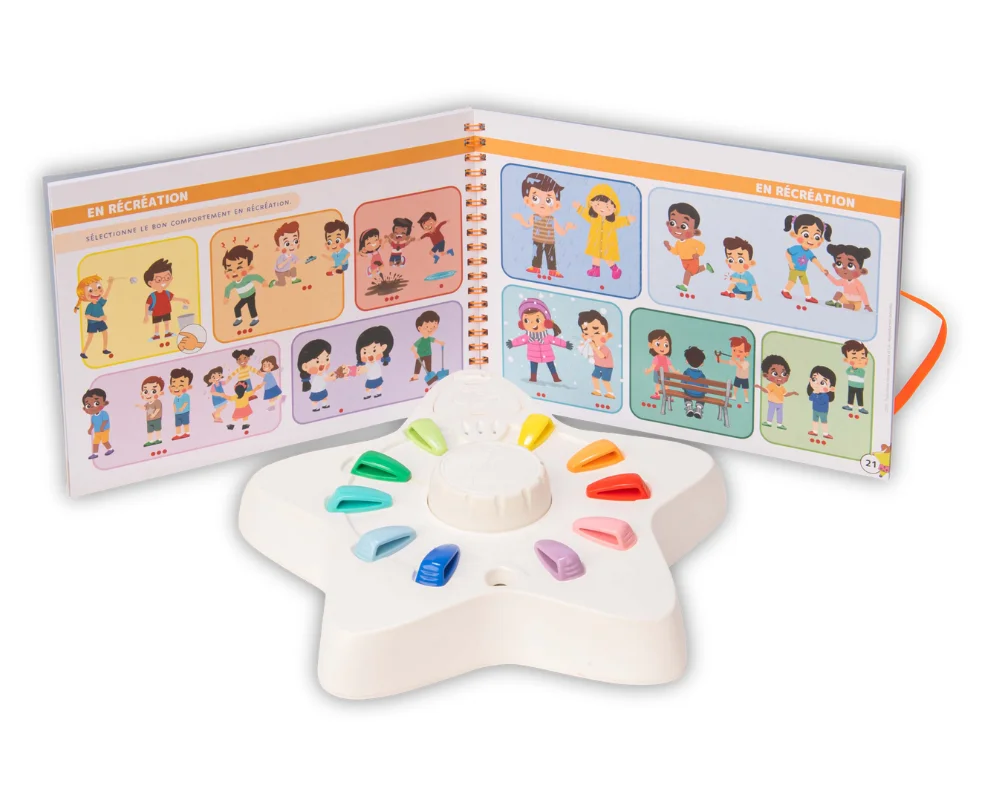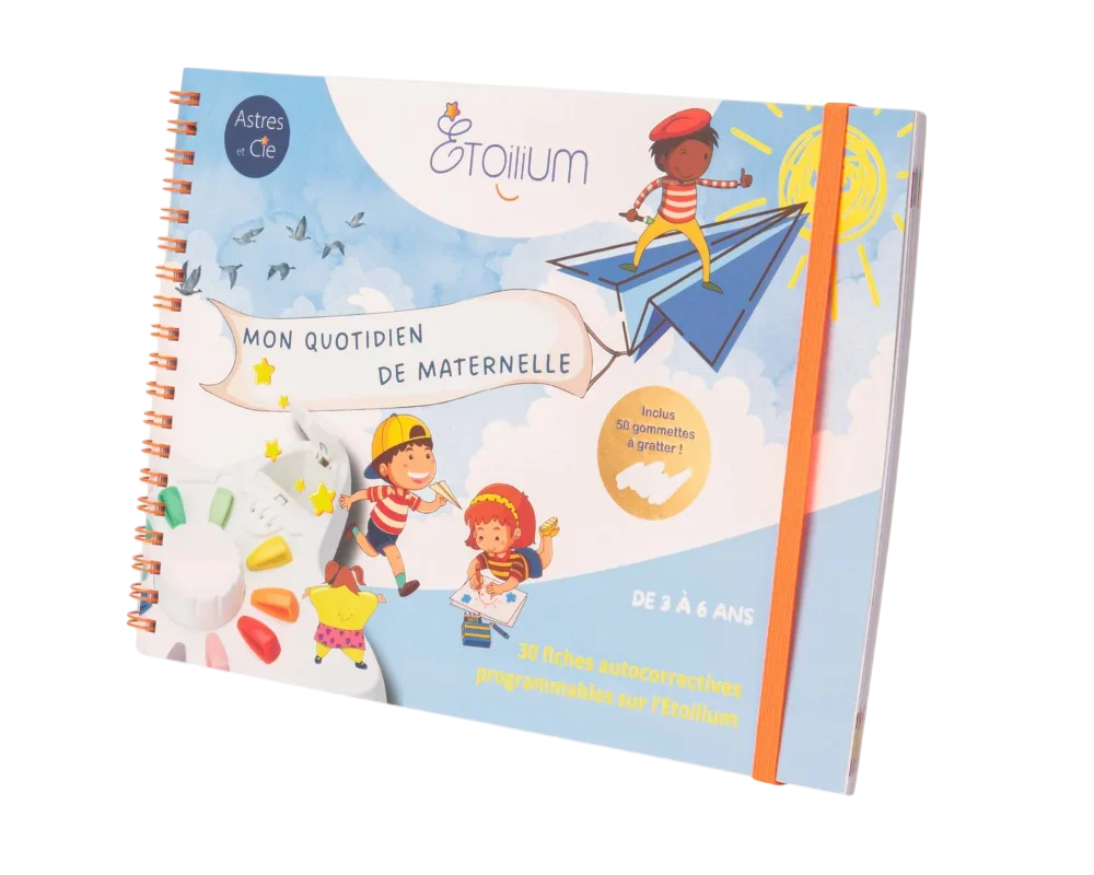 Combiné avec l’Etoilium (vendu séparément), ce livret permet aux enfants de 3 à 6 ans d’apprendre et de comprendre le monde qui les entoure. Au fil des pages, les enfants découvrent des lieux familiers de leur quotidien et sont invités à s’interroger dessus. La chambre, la cuisine, l’école, la salle de motricité, la cantine, la récréation, la ville, le parc, les transports, les vacances…