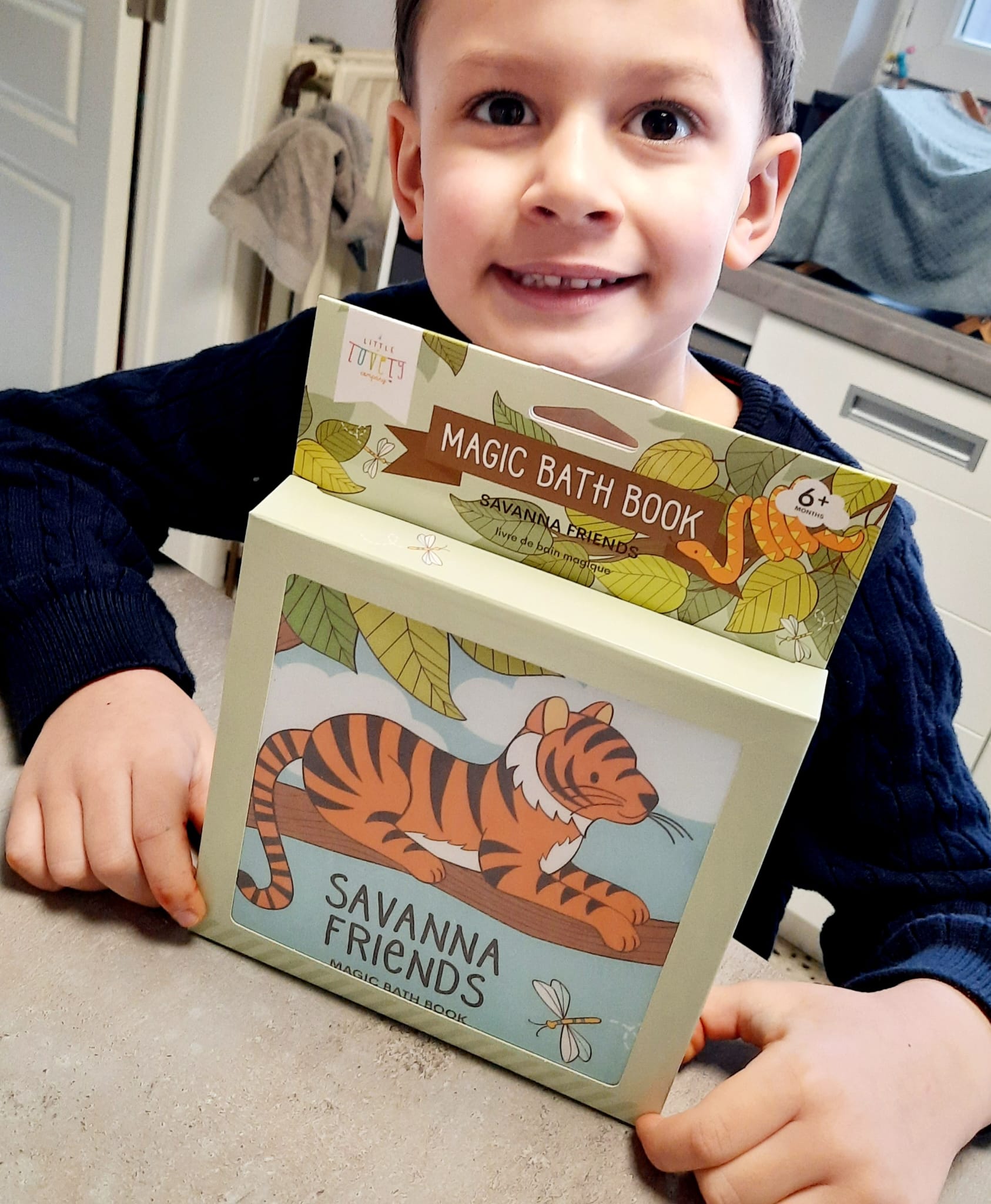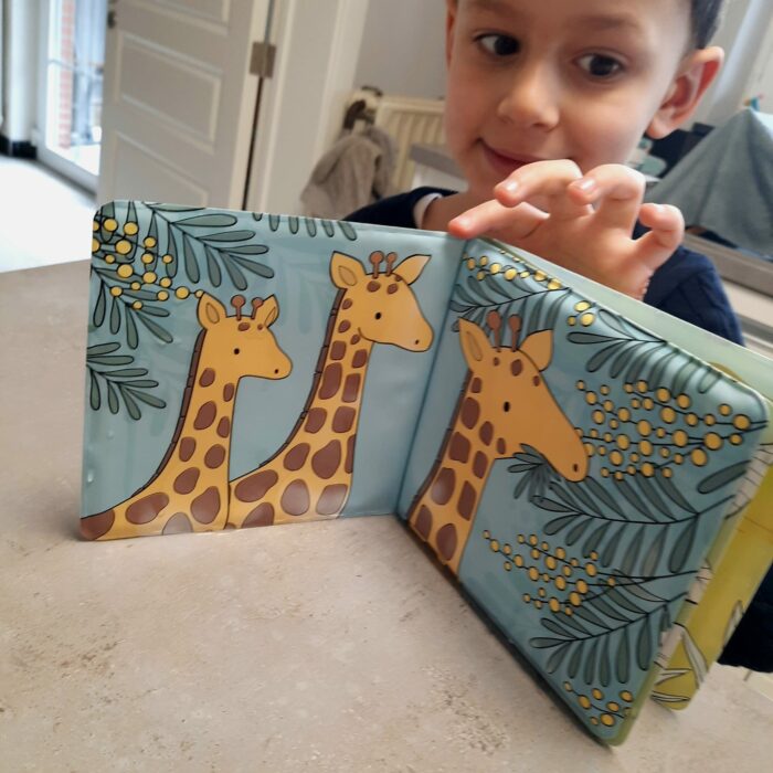 Ne vous détrompez pas, c’est bien un livre de bain. Vous pouvez l’offrir à votre enfant dès son plus jeune âge. Les couleurs apparaîtront au contact de l’eau.