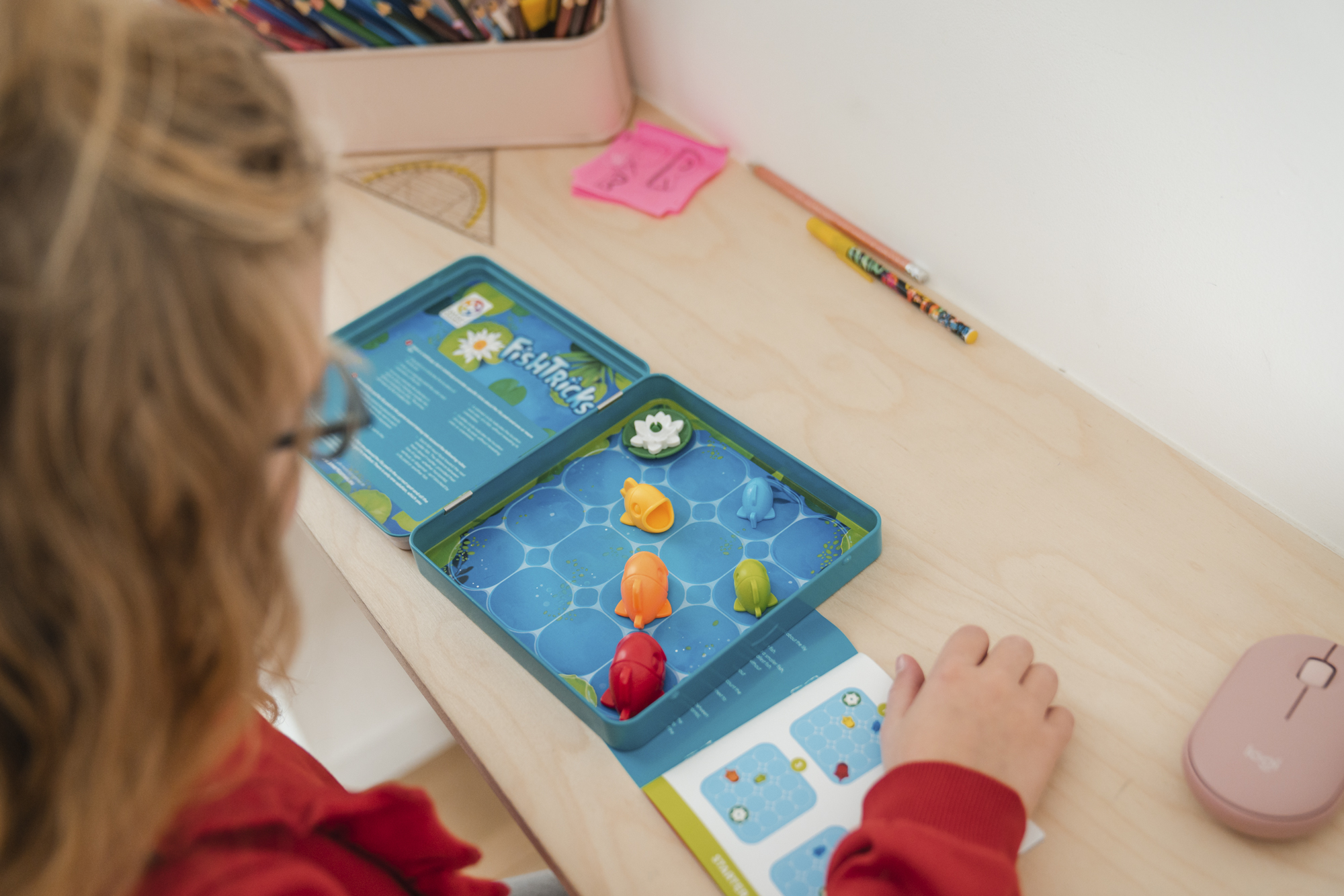 Un jeu qui déborde d’imagination avec ses nombreux défis ! Faites preuve de stratégie pour placer vos poissons colorés du plus gros au plus petit, tout en nageant autour du nénuphar. Faites en sorte que chaque poisson se dirige vers un congénère plus petit que lui pour le chasser. Choisissez votre défi, alignez vos poissons et résolvez l’énigme aquatique !