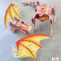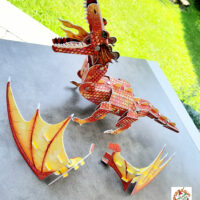 Mais quelle belle activité que de réaliser une maquette ! Cela nécessitera de l’organisation, une bonne orientation spatiale, beaucoup de concentration, de patience aussi, le geste juste et précis. C’est presque une activité scolaire, sauf qu’elle se fait à la maison 🙂 . Et si votre enfant aime les bêtes monstrueuses, il sera motivé ! Le résultat est au rendez-vous ! Avec toutes ses articulations, son dragon sera mobile.