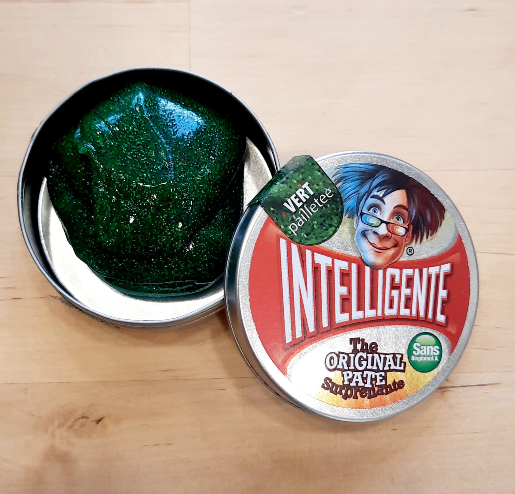 La pâte intelligente est une pâte tendre à malaxer. Ludique, attrayante et très malléable, la pâte intelligente est élastique, elle rebondit comme un ballon, se déchire comme du papier et peut même servir de balle anti-stress !