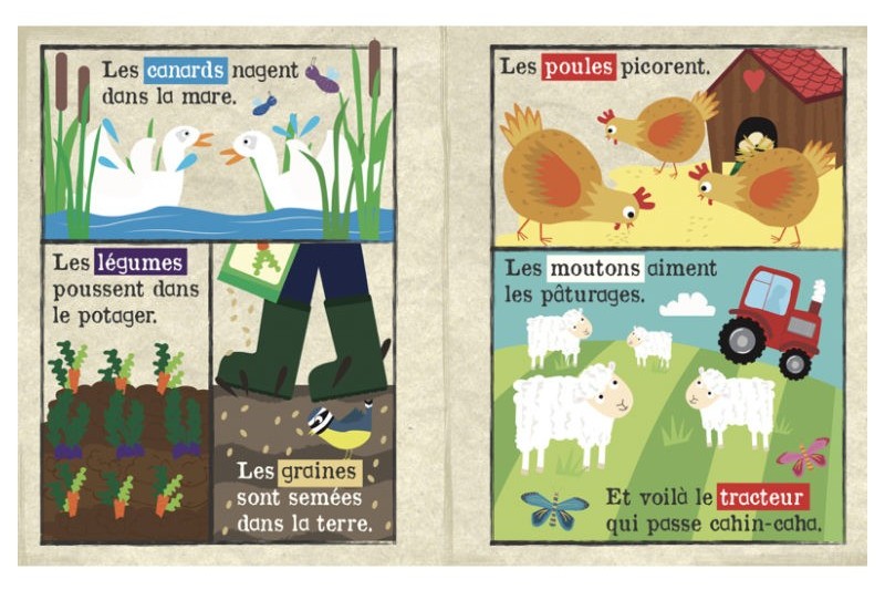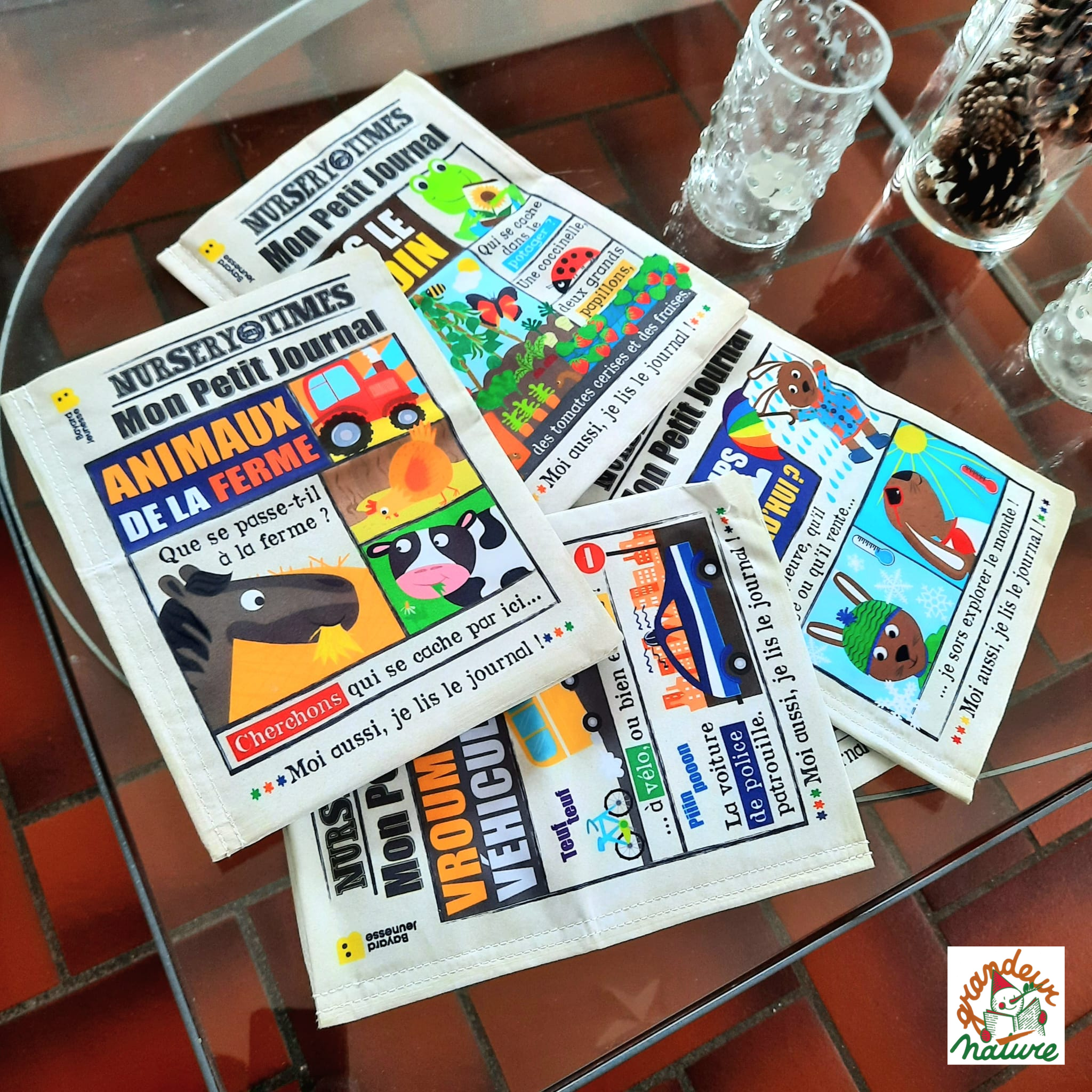 | Crinkly Mon petit journal | Animaux de la ferme, Chant des animaux, Dans le jardin, Météo, Véhicules |