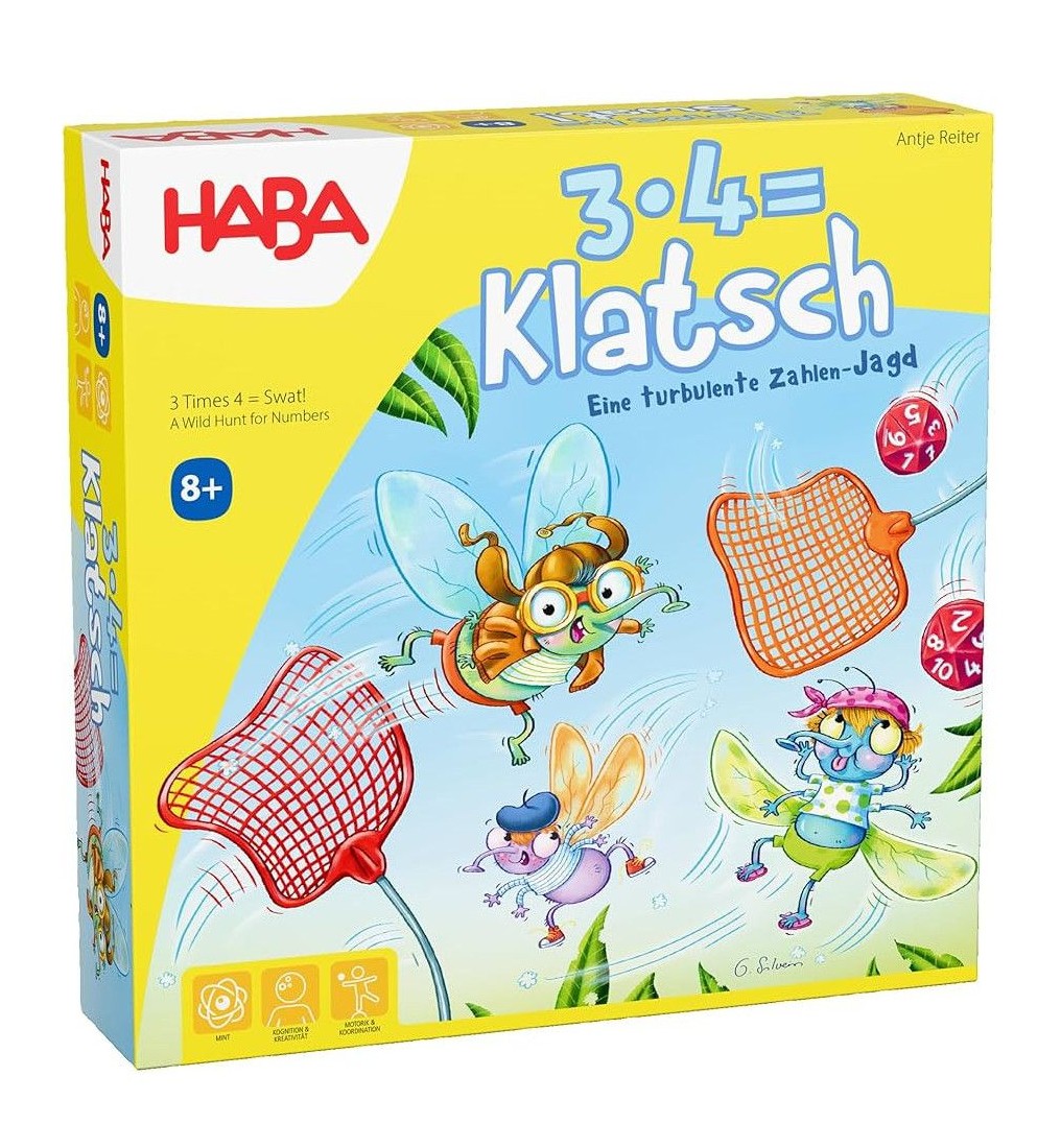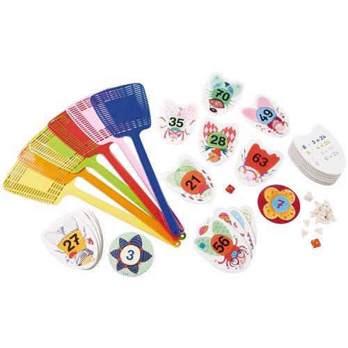 5 x 8, ça fait combien ? Euh ! 40 ! Il s’agit maintenant de trouver la bonne mouche et de taper sur le résultat. Mais où est cette mouche sur la table ? Celui qui calcule vite et attrape beaucoup de mouches gagnera cette folle partie d‘attrape-mouches.