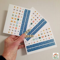 Du plus petit autocollant pour l’auriculaire au plus gros pour le pouce (120 au total), collez, appuyez : c’est fait ! Et pour les artistes du travail précis, il y a 6 bandes de motifs à découper sur mesure. Vous trouverez aussi dans la pochette 2 très belles petites limes pour un travail bien fini. Repositionnables, ils se décollent facilement.