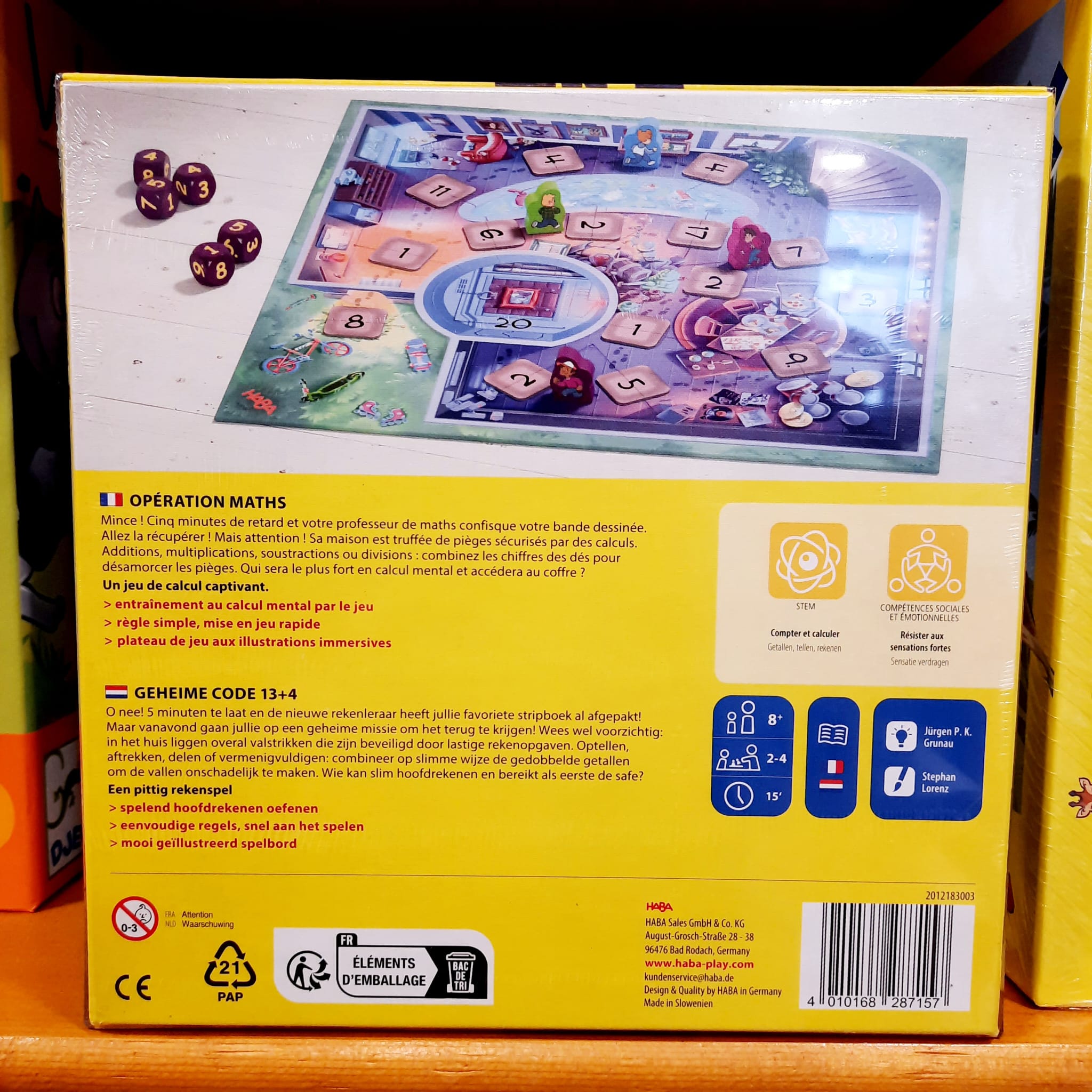Mince ! Cinq minutes de retard et votre professeur de maths confisque votre bande dessinée. Allez la récupérer ! Mais attention ! Sa maison est truffée de pièges sécurisés par des calculs. Additions, multiplications, soustractions ou divisions: combinez les chiffres des dés pour désamorcer les pièges. Qui sera le plus fort en calcul mental et accédera au coffre ?