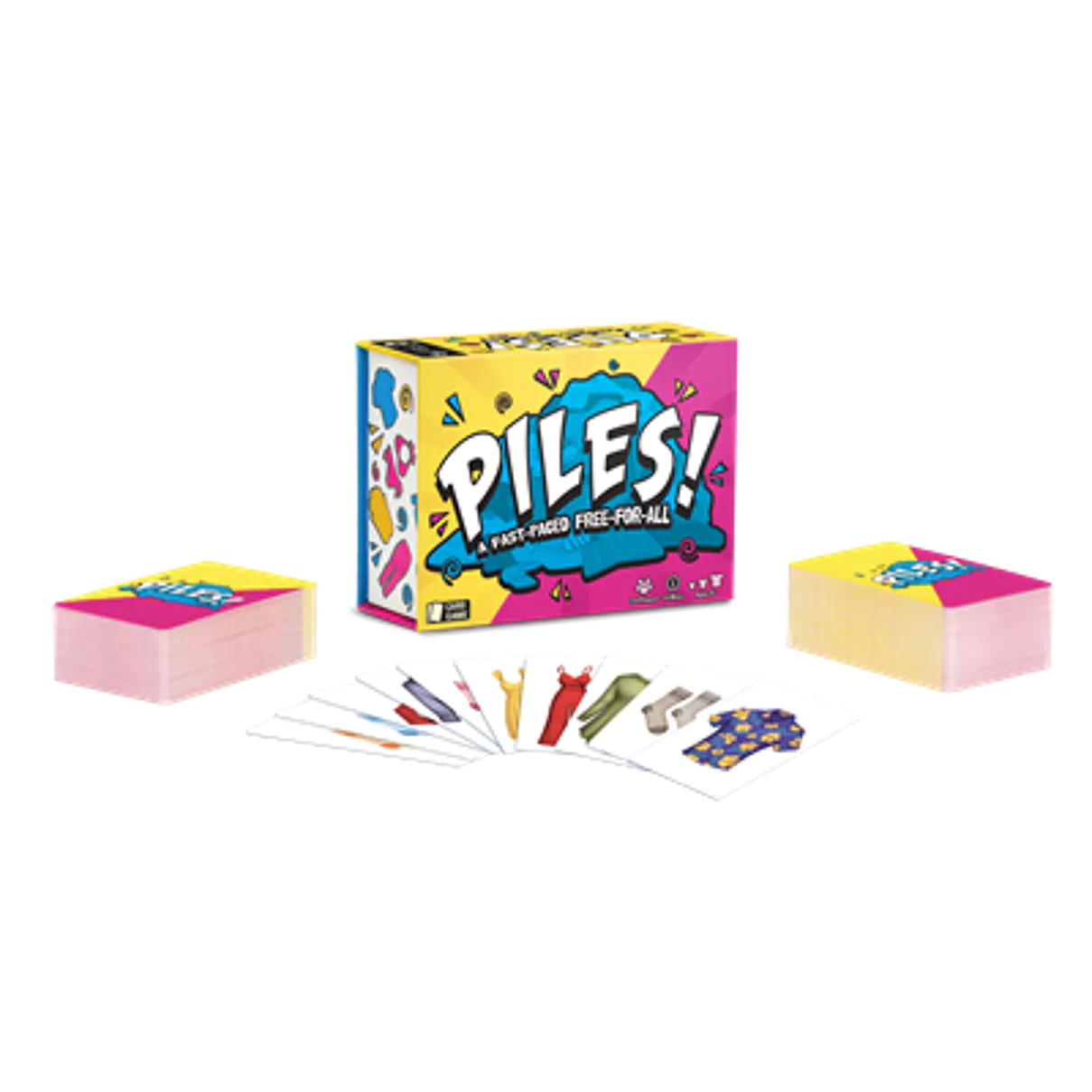 Piles! est un jeu de cartes et de rapidité pour 2 à 8 joueurs. Dans ce jeu d’ambiance frénétique, tous les joueurs tentent en même temps de rassembler des séries de cartes en pratiquant des échanges entre leurs piles de cartes (vêtements) et un « pot » central. Votre réactivité et votre mémoire seront vos meilleurs atouts…