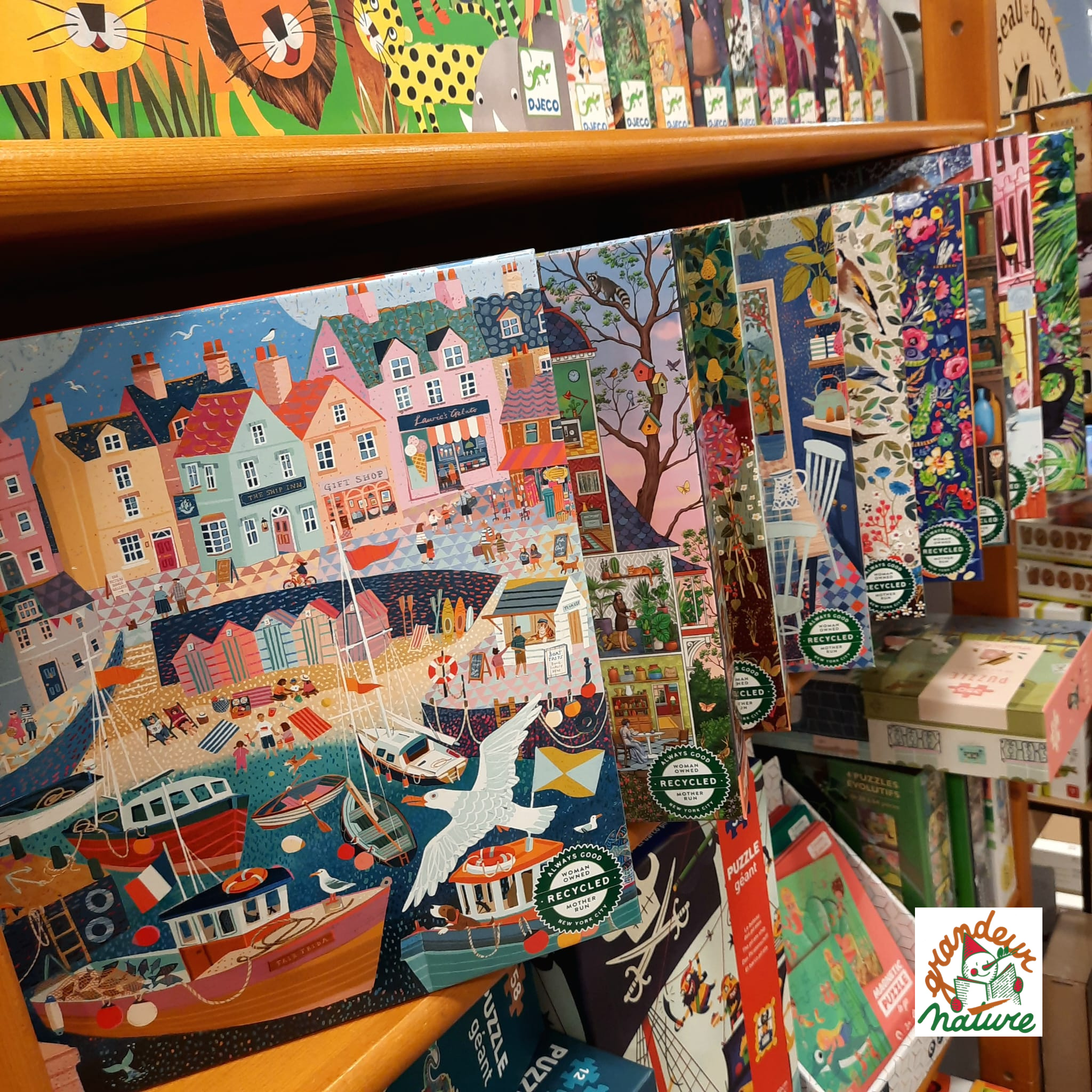Les puzzles Eeboo sont faits à 90% de carton recyclé et imprimés avec des encres végétales pour un impact environnemental limité.