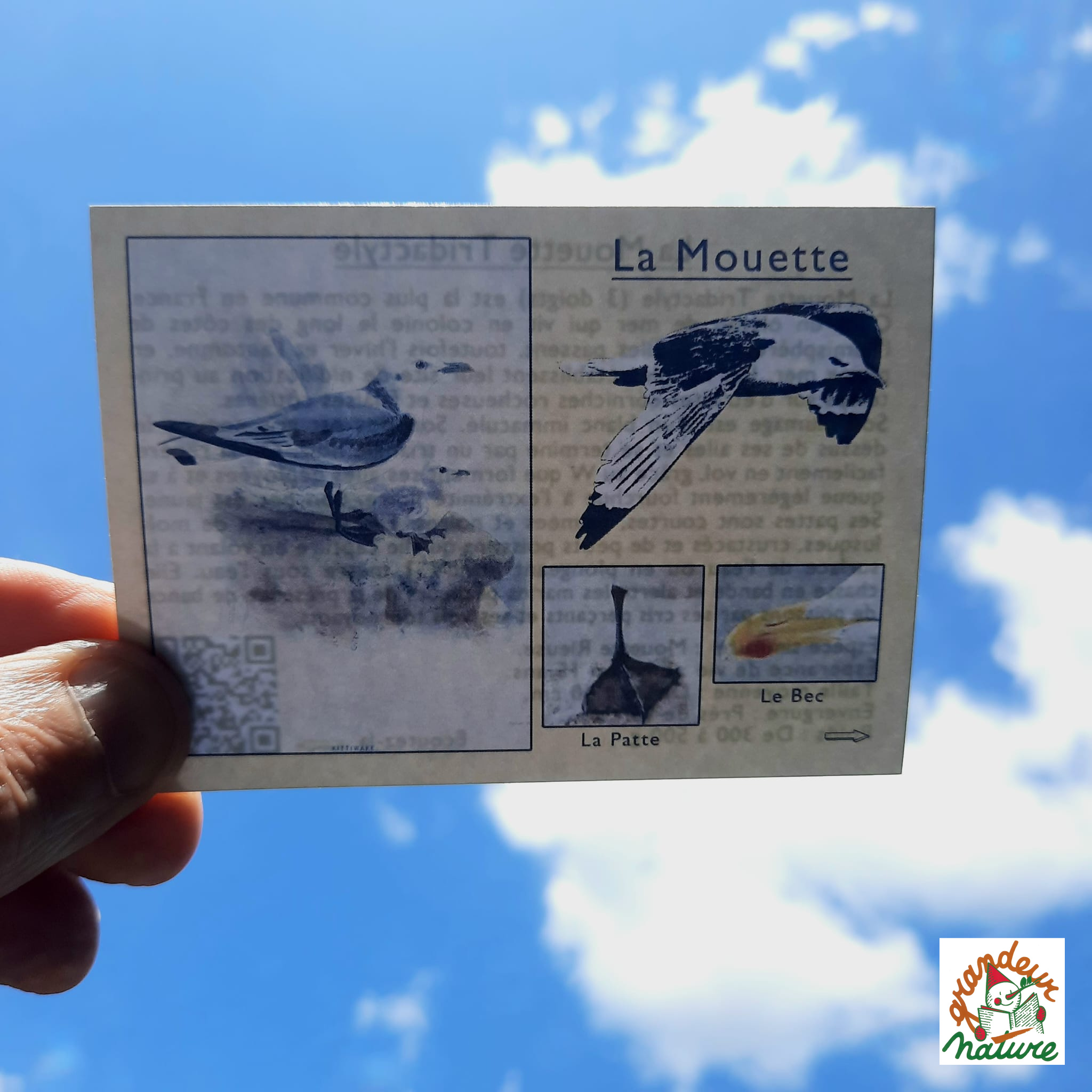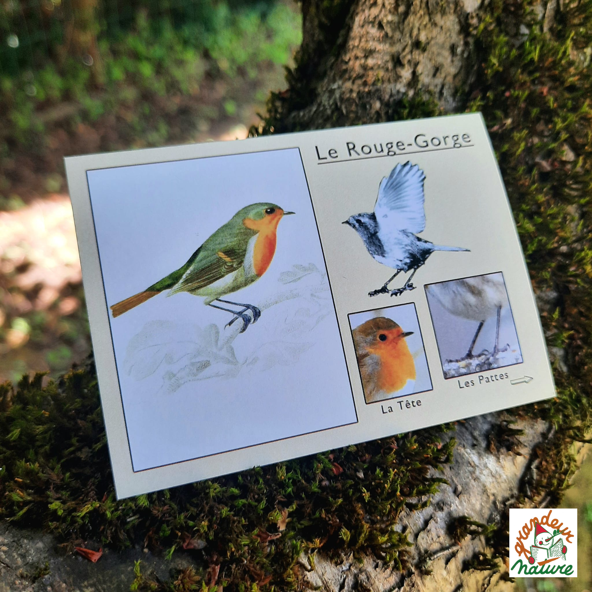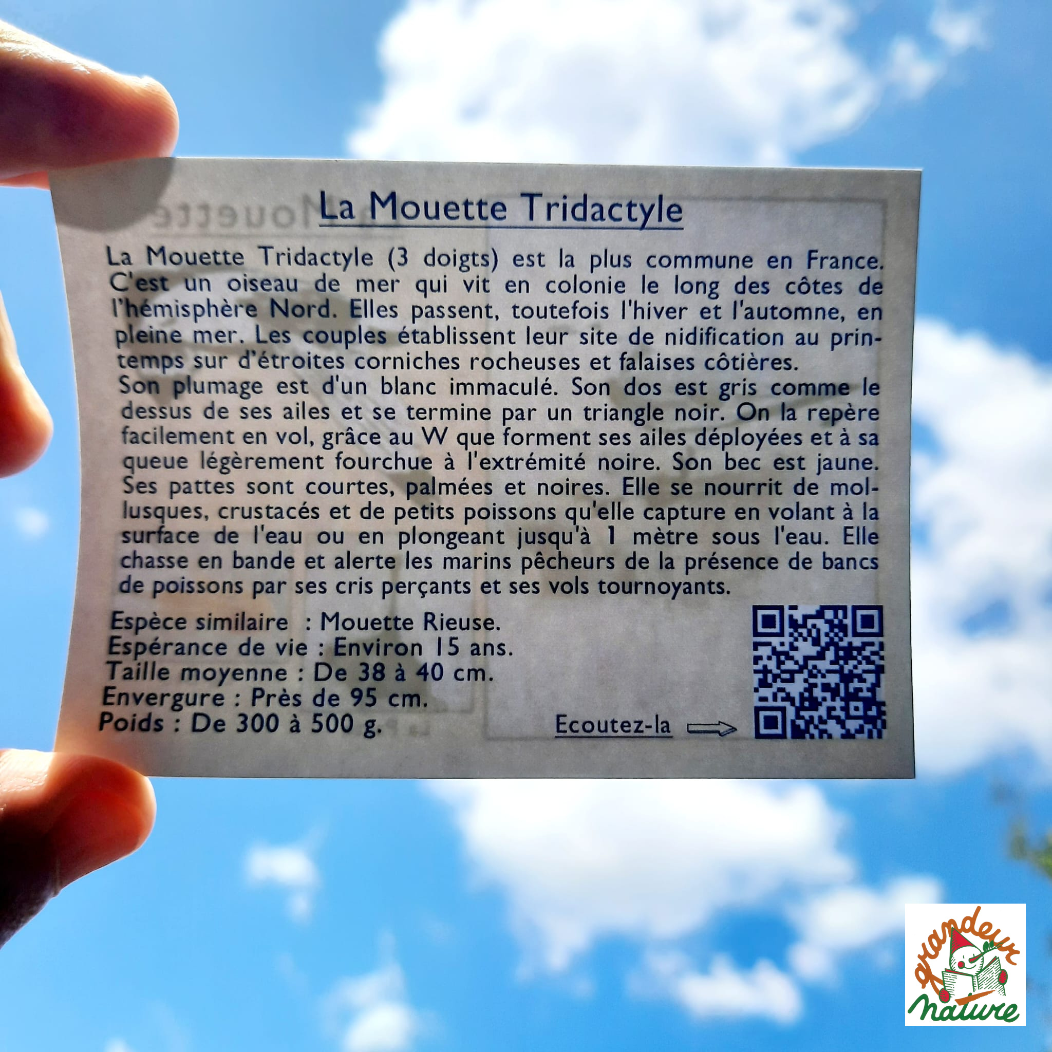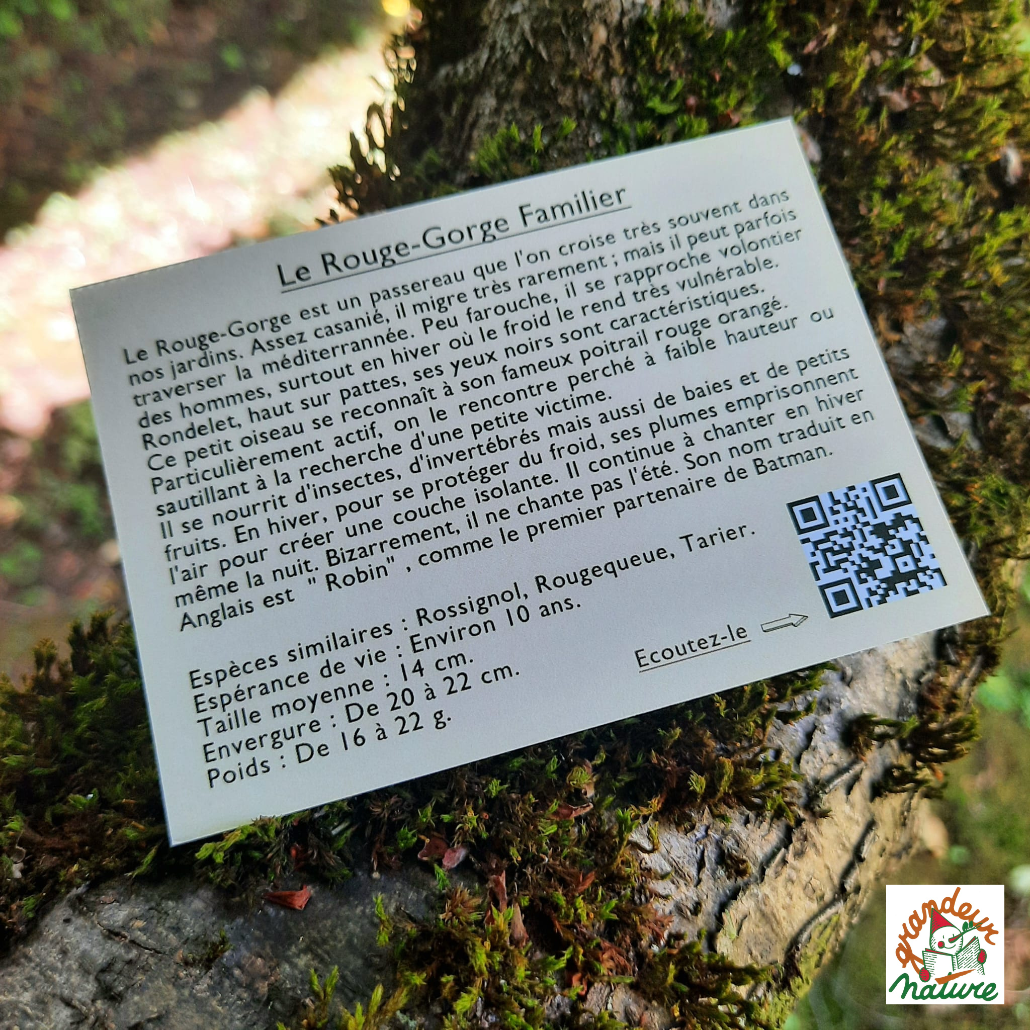 Vous verrez sur chaque fiche: photos, dessins, petit texte de présentation, les caractéristiques de l’animal et … un QR code pour l’écouter chanter !